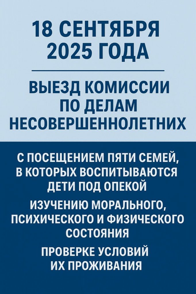 2025 жылғы 18 қыркүйекте Бурабай ауданы әкімінің орынбасары төрағалық еткен кәмелетке толмағандар ісі жөніндегі комиссия мүшелері қамқоршылықтағы балалар тәрбиеленіп жатқан бес отбасына барып, тексеріс жүргізді.