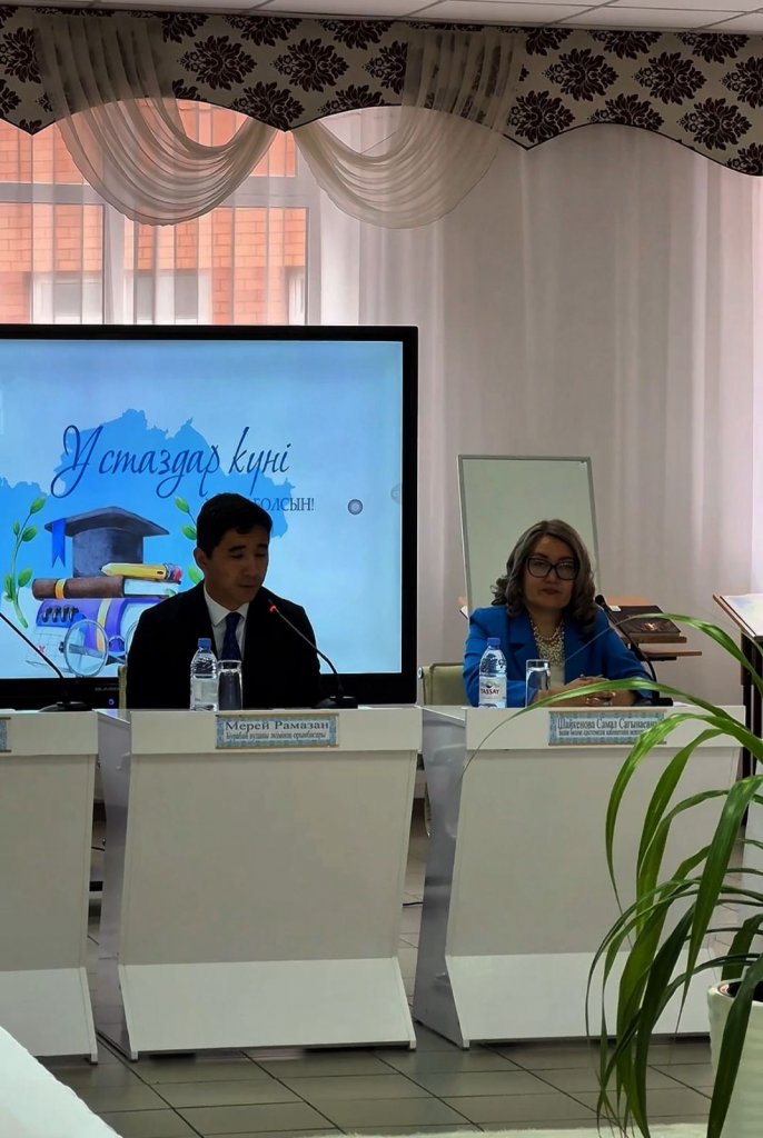 Кәсіби мерекеге орай аудан әкімінің орынбасары Мерей Рамазан, сондай-ақ аудандық білім бөлімінің әдістемелік кабинетінің меңгерушісі жас педагогтармен жылы әрі мазмұнды әңгіме өткізді.