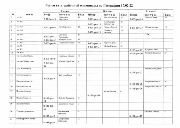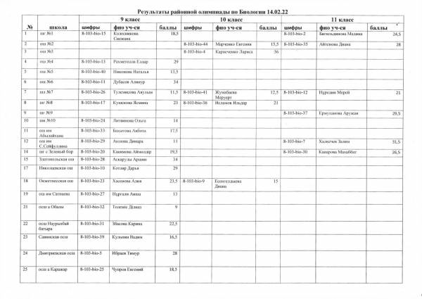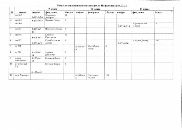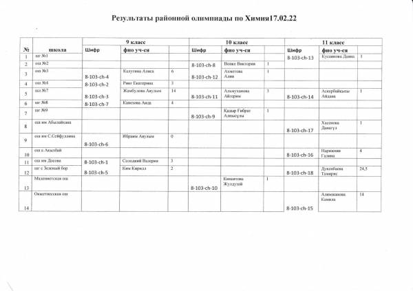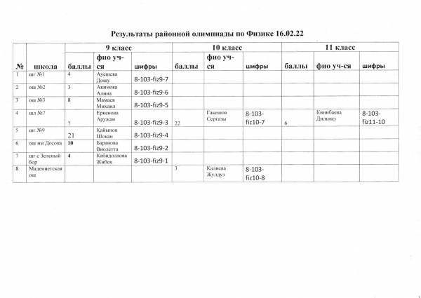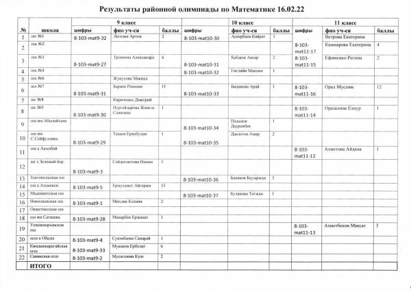 Результаты районной олимпиады на 21.02.2022 г.
